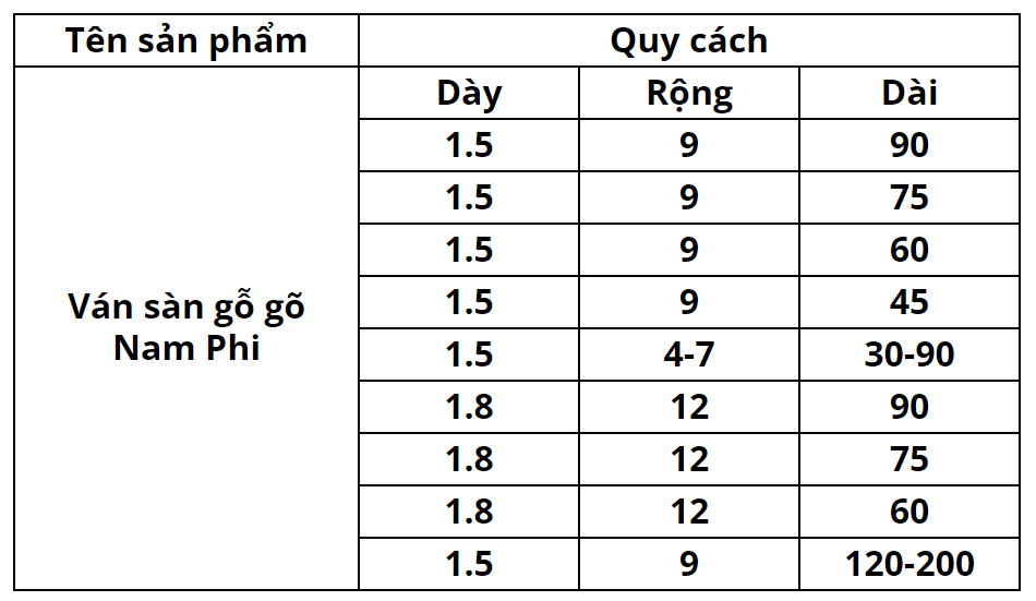 Sàn gỗ Gõ Đỏ Nam Phi được xẻ thành nhiều quy cách (chiều dài * chiều rộng * độ dày) khác nhau. Tùy thuộc vào diện tích căn phòng lát sàn và mong muốn của gia chủ, mà lựa chọn loại quy cách ván sàn và cách lát phù hợp. Sàn gỗ Gõ Đỏ Nam Phi lát đối xứng hoặc lát xương cá rất đẹp.